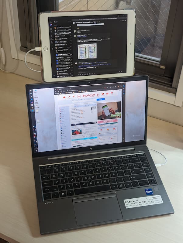 Windowsの場合は「Duet Display」を使うとiPadを拡張ディスプレイとして使うことができます。iPadとの接続方法は、常時ノートPCの上に置いて常時表示することと接続安定性の点から有線接続がいいと思います。