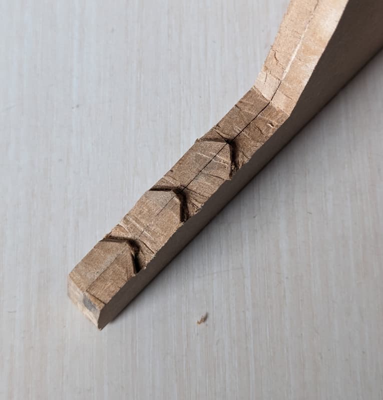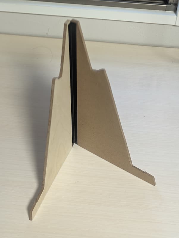 抉る長さはiPadやモバイルモニターの厚みに合うように、スタンドを60度に広げた状態でもきちんと把持するように下記のように板を削ります。