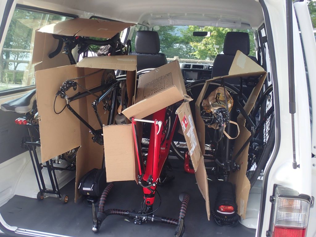 自転車以外のものを追加で持っていくか、4台以上の自転車を持って行くかどうかで、ハイエースかBongoレベルの一回り小さい車種かを選ぶ一つの判断基準になります。