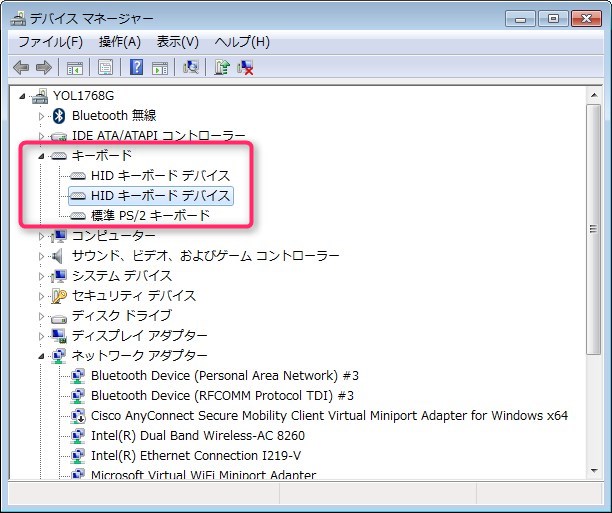 - 設定対象のキーボードを間違えないようにほかのキーボードをすべてはずし、通常キーボードを指しているUSBポートに接続しておく