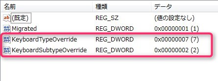 KeyboardSubtypeOverride=2 - 接続したキーボードが英語キーボードの場合は