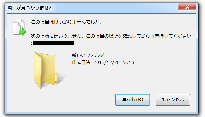 ネット上にはこれらのレジストリを一括編集するregファイルが提供されています。これを実行したところ、フォルダは消えたもののしばらくしてフォルダリネームの際に下記のようなエラーが表示されるようになりました。