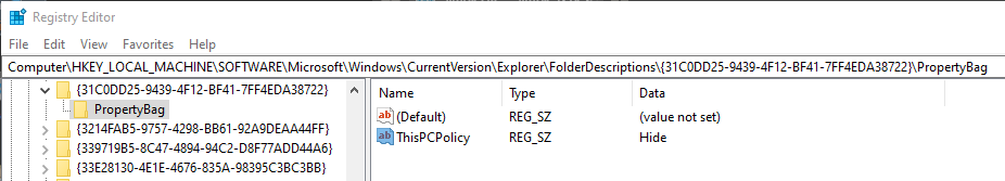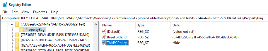 HKEY_LOCAL_MACHINE\SOFTWARE\Microsoft\Windows\CurrentVersion\Explorer\FolderDescriptions\{7d83ee9b-2244-4e70-b1f5-5393042af1e4}\PropertyBag