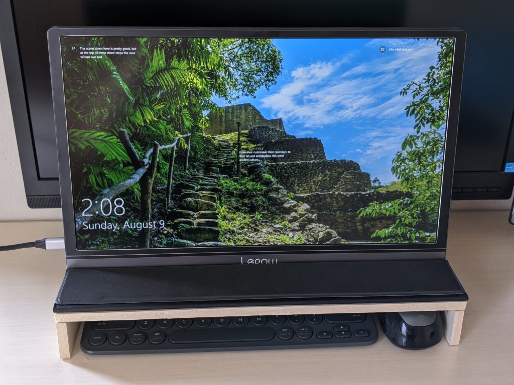 購入したモバイルモニターは「Lepow Portable Monitor Black」で、Amazonのタイムセールを利用して¥15,800でした。自宅に限らず、実家などでもマルチモニターで仕事ができるようになったこと、自宅においてはノートPCを広げる必要がなくなったことで机が広く使えるようになりました。常に使用する機会があるので、コスパは上々です。