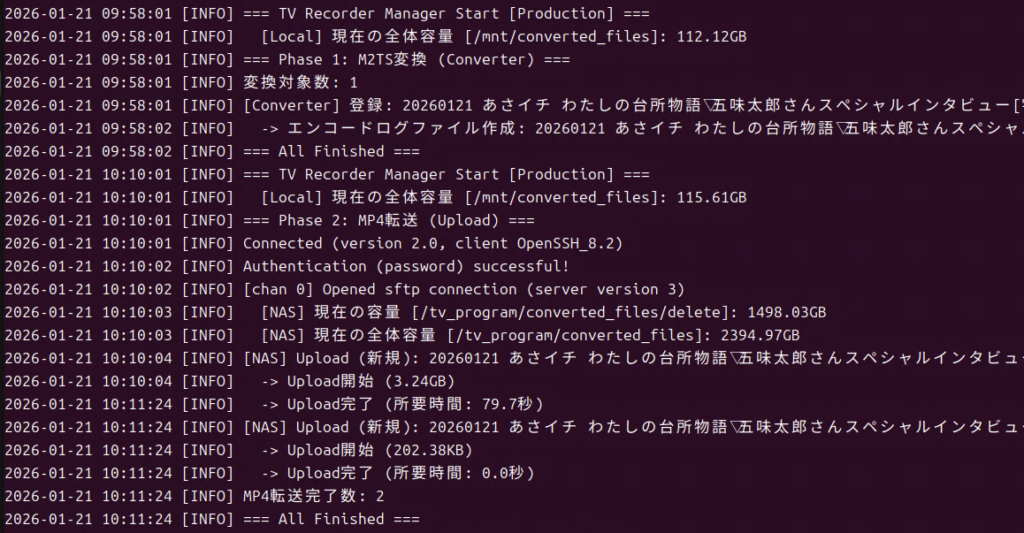 - mp4ファイル: sftp経由でNASへアップロード