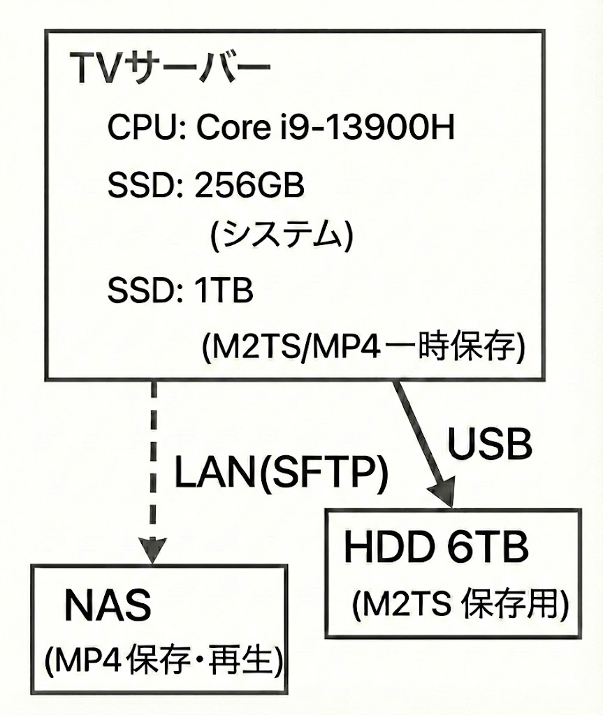 構築したTVサーバーのシステム構成は以下のとおりです。