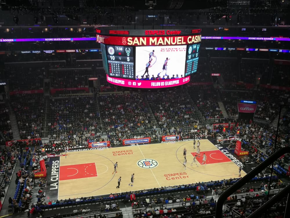 ゴール下は選手やボールが飛び込んで来ることがあり、ゴール下からの距離も取れず選手にとっても危険ですので、やはり距離の取れるコート四隅がベストです。