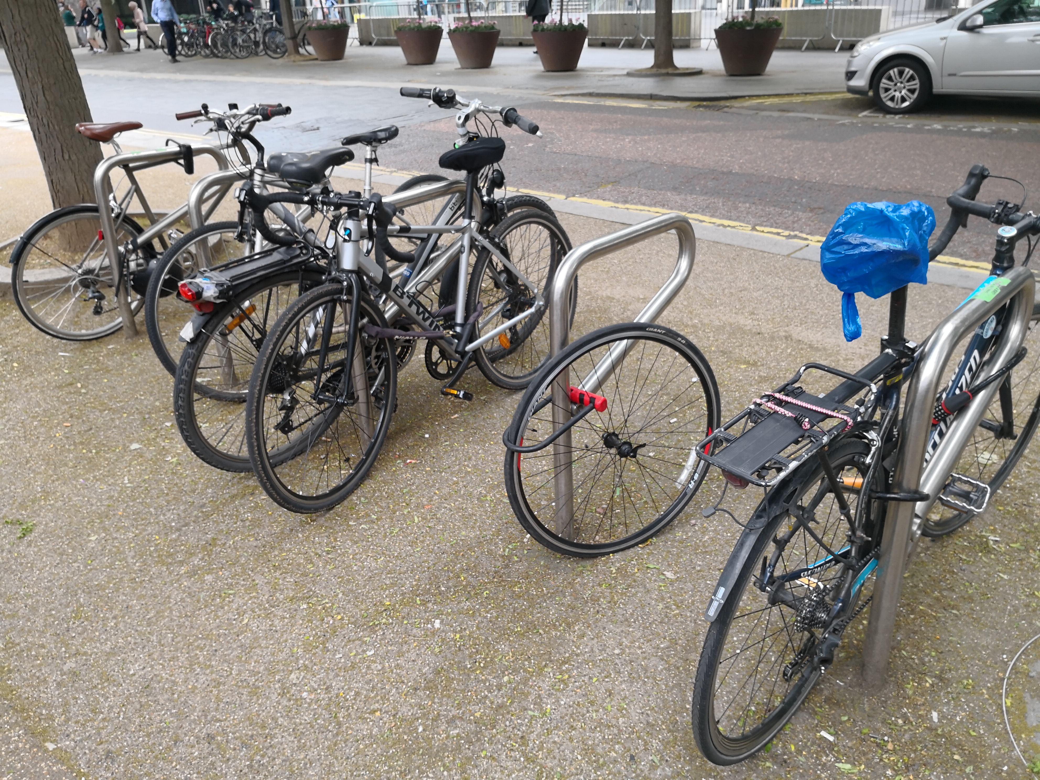 ロンドンにて。ホイールのみを残して盗難されたと思われます